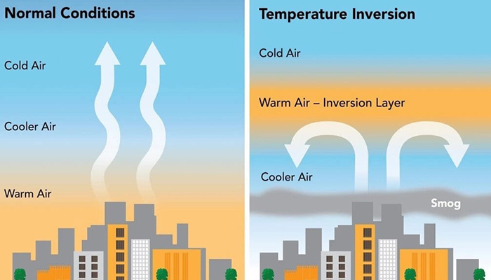 در حالت عادی و در روزهای پاک، جو زمین مانند یک دودکش طبیعی عمل میکند؛ هوای گرم از سطح زمین به بالا میرود و آلایندهها را با خود به لایههای بالاتر جو برده و پراکنده میسازد. اما گاهی اوقات، طبیعت این قانون را برعکس میکند. در پدیده وارونگی دما، یک لایه هوای گرم مانند یک “سرپوش” یا “درب قابلمه” بر روی لایهای از هوای سرد که در مجاورت زمین قرار دارد، قرار میگیرد.